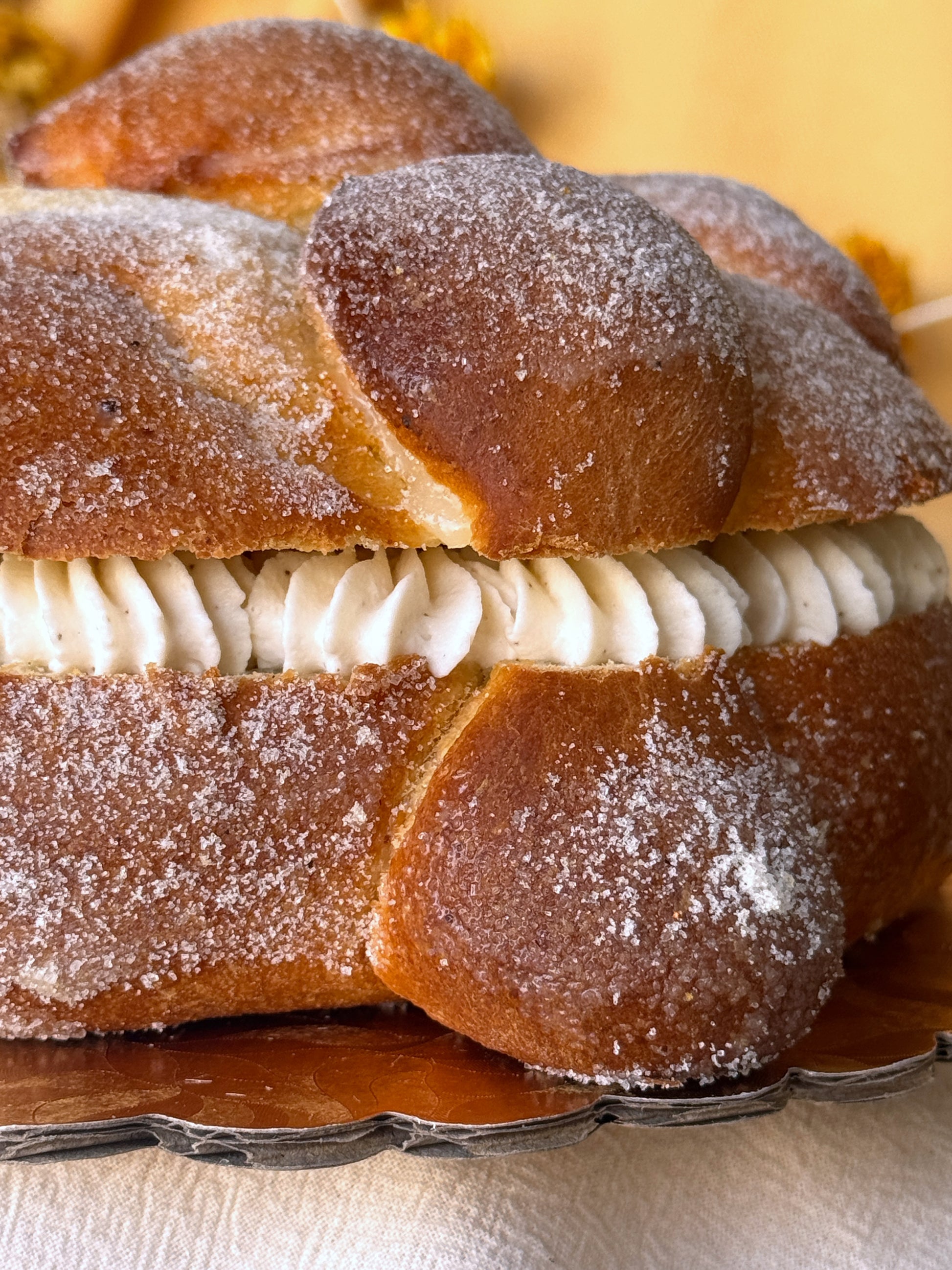 A very special shareable pan de muerto made with Sonora flour and filled with a decadent espresso vanilla chantilly.